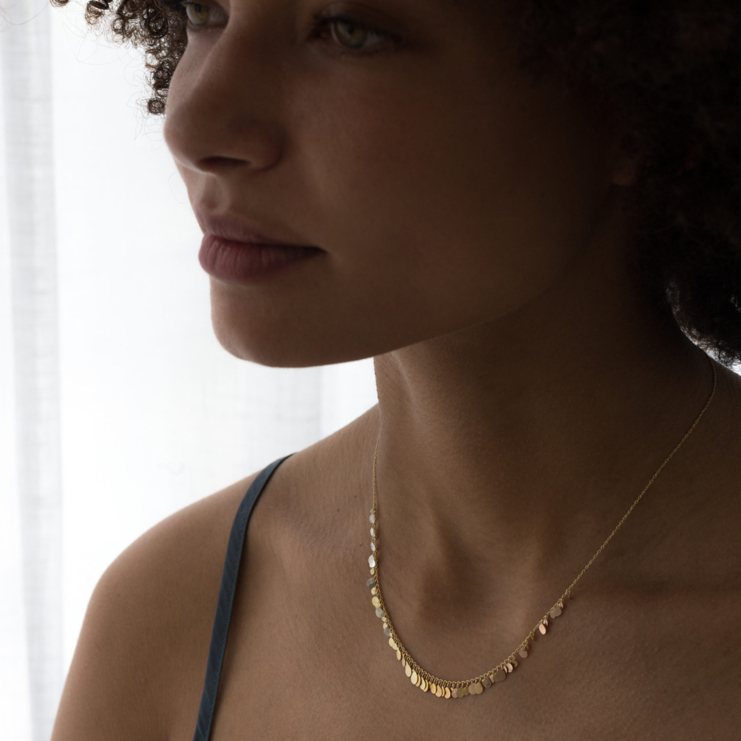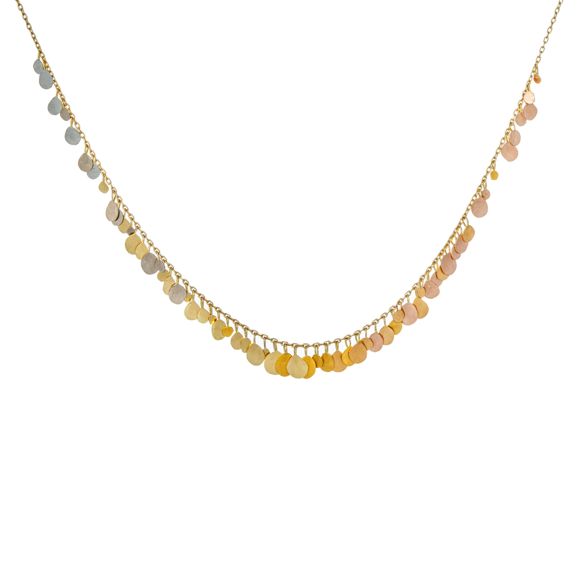 18K yellow, rose, white gold, 22K, 24K + platinum on 18K yellow gold chain