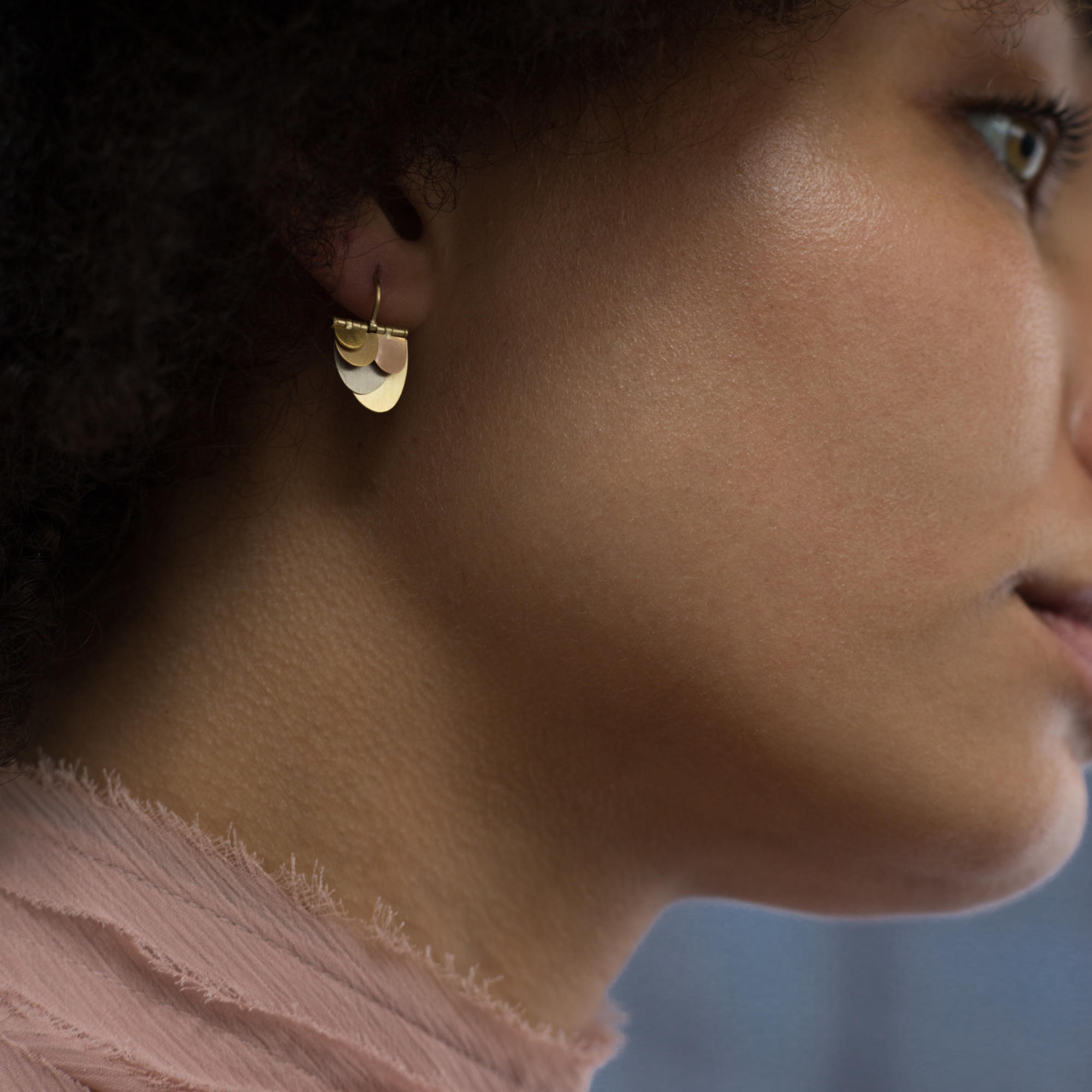 18K yellow, rose, white gold, 22K, 24K + platinum on 18K yellow gold earwire
