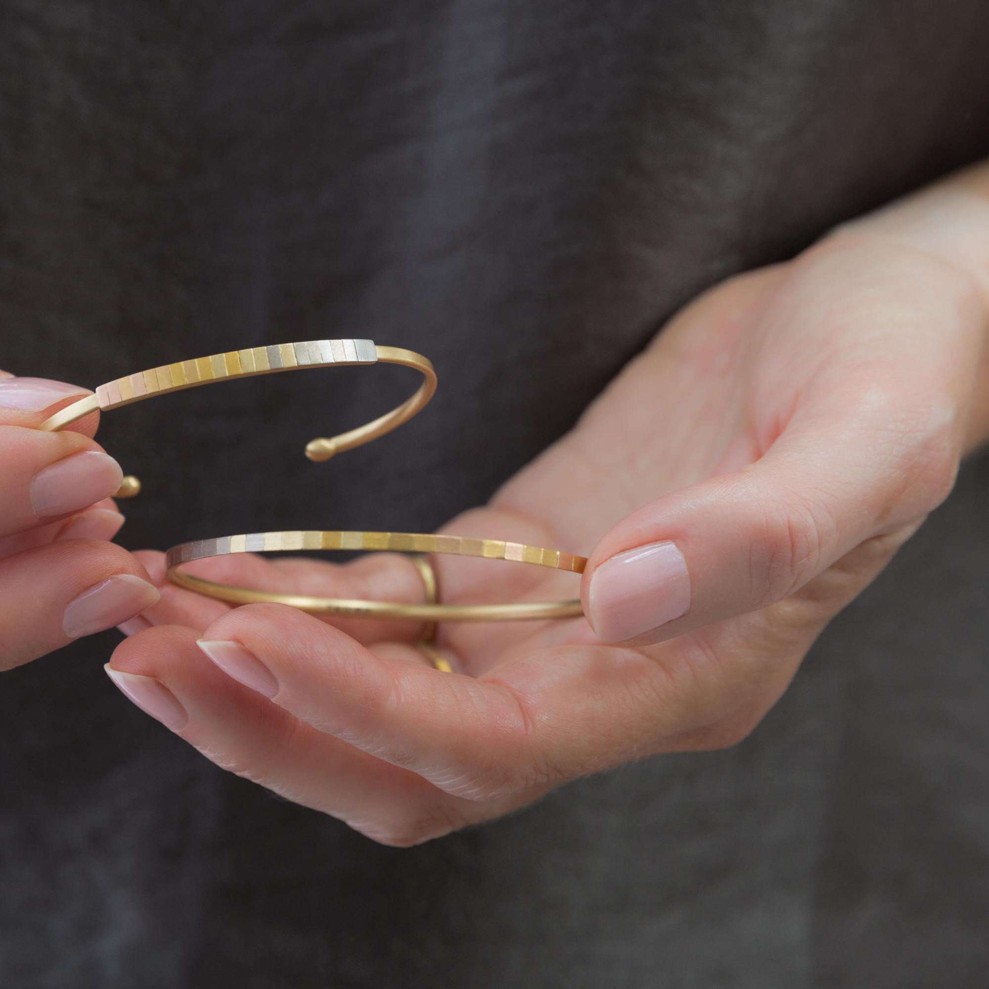 18K yellow, rose, white gold, 22K, 24K + platinum facets on 18K yellow gold cuff